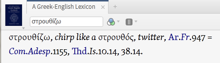 The image below displays the LSJ entry for στρουθίζω in
