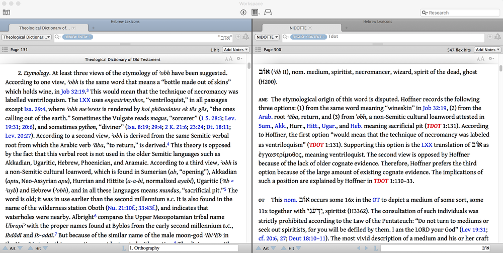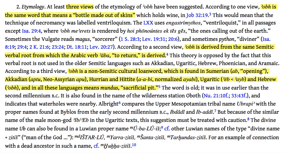 Second, notice the red text in NIDOTTE pictured above. The ANE section of the אוֹב entry in NIDOTTE is essentially a summary of TDOT.