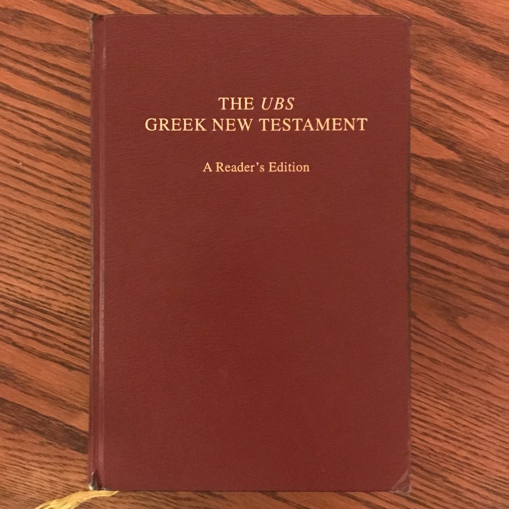 My journey began in 2008, when the first edition of the UBS Greek New Testament Reader’s Edition was hot off the the press. I loved it because it’s typographically easy on the eyes — so much better than the Zondervan edition available at the time — and it also includes parsing information for more difficult forms. The parsing information allowed me to stay in the text; it eliminated the need to open a computer program to check the parsing of irregular forms. I was one year into Greek and could not wait to start reading.