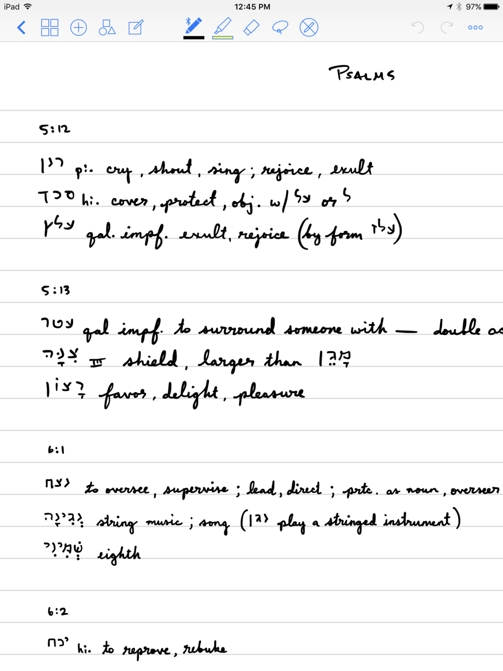 There are times when I use Accordance and GoodNotes in split screen. Because of the auto-advance feature of the zoom window, I can write continuously even though I have a relatively small space, half of a horizontal 9.7″ screen. You can see an example and more explanation of this feature at the bottom of this page, but check this out, too.