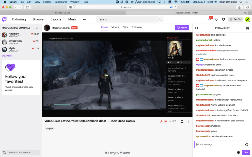 As I was sitting down to prep for today’s classes, one of my colleagues messaged us about how we prefer to say “live stream” in Latin. “Where is he going with this?” Well, we ended up combining our classes as he Twitch streamed and played a PS4 Star Wars game for us. We were in the language for almost a full hour, which to me felt like 10 minutes.