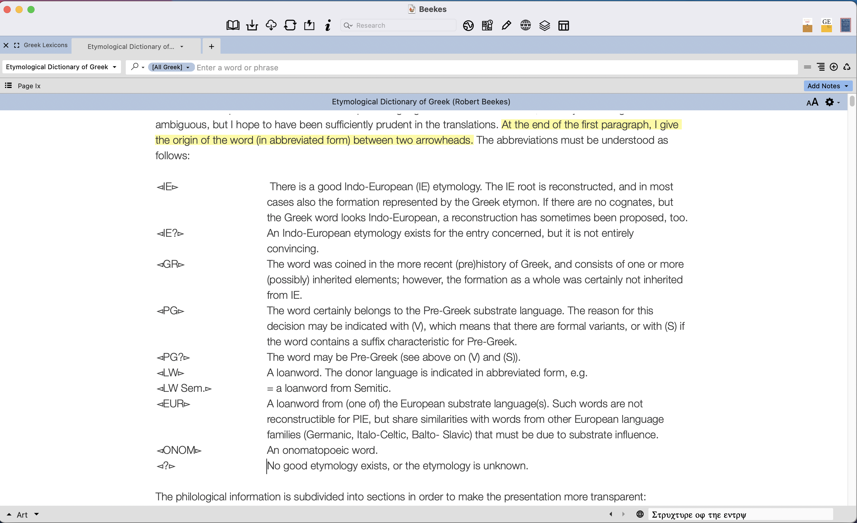 This week, alongside the Brill Dictionary of Classical Greek, Accordance has released Robert Beekes’ Etymological Dictionary of Greek (2 vols.). In the preface, Beekes describes his work as “the first comprehensive etymological dictionary of Greek in the English language … incorporating the most recent scholarly literature on Greek etymology” (p. vii).