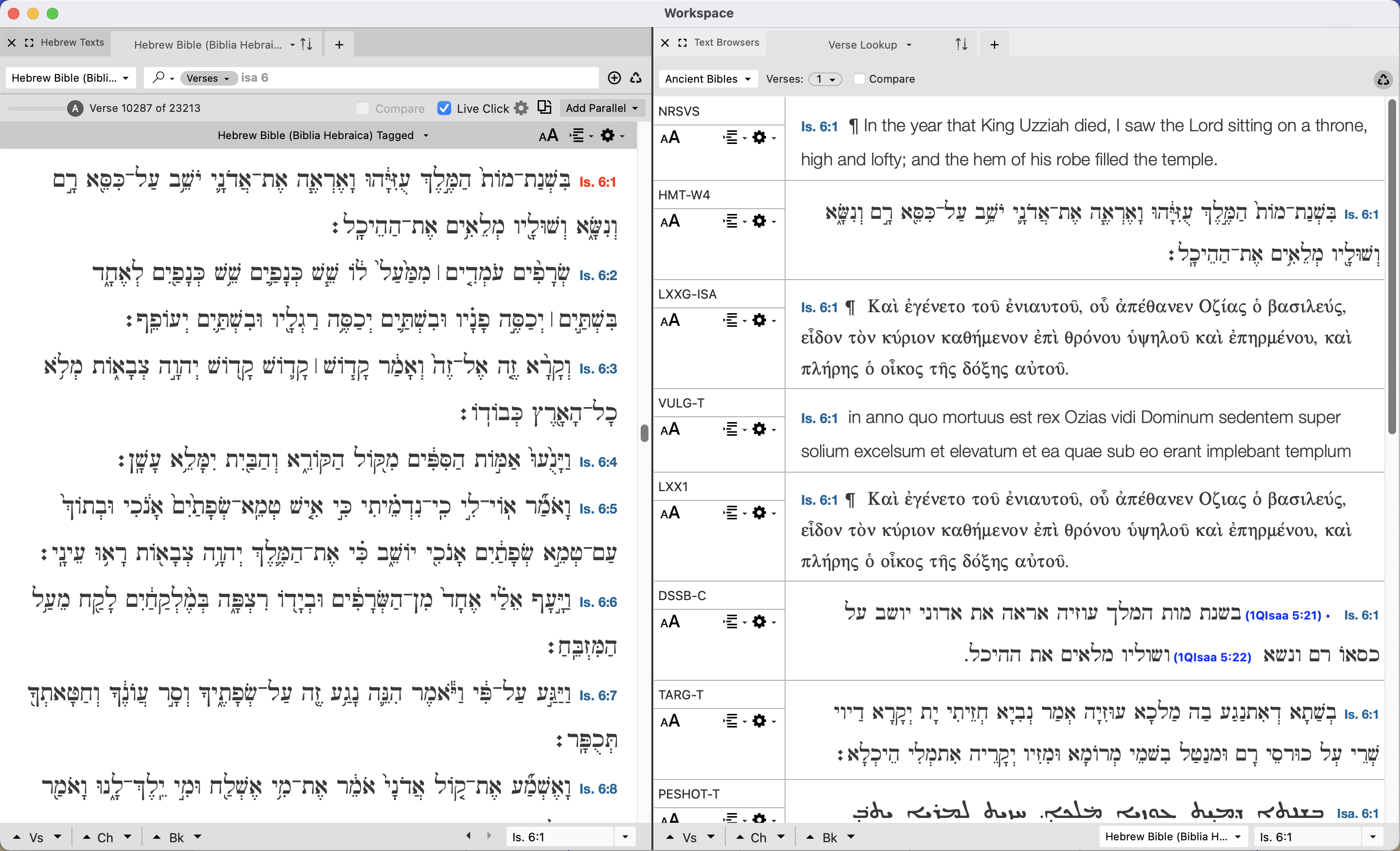 I hope this gives you a better idea of how you can use Accordance to compare OT versions. If you would like to see a video of setting up a similar workspace and jumping to it from a verse reference, check out the end of this post I wrote a few years ago.