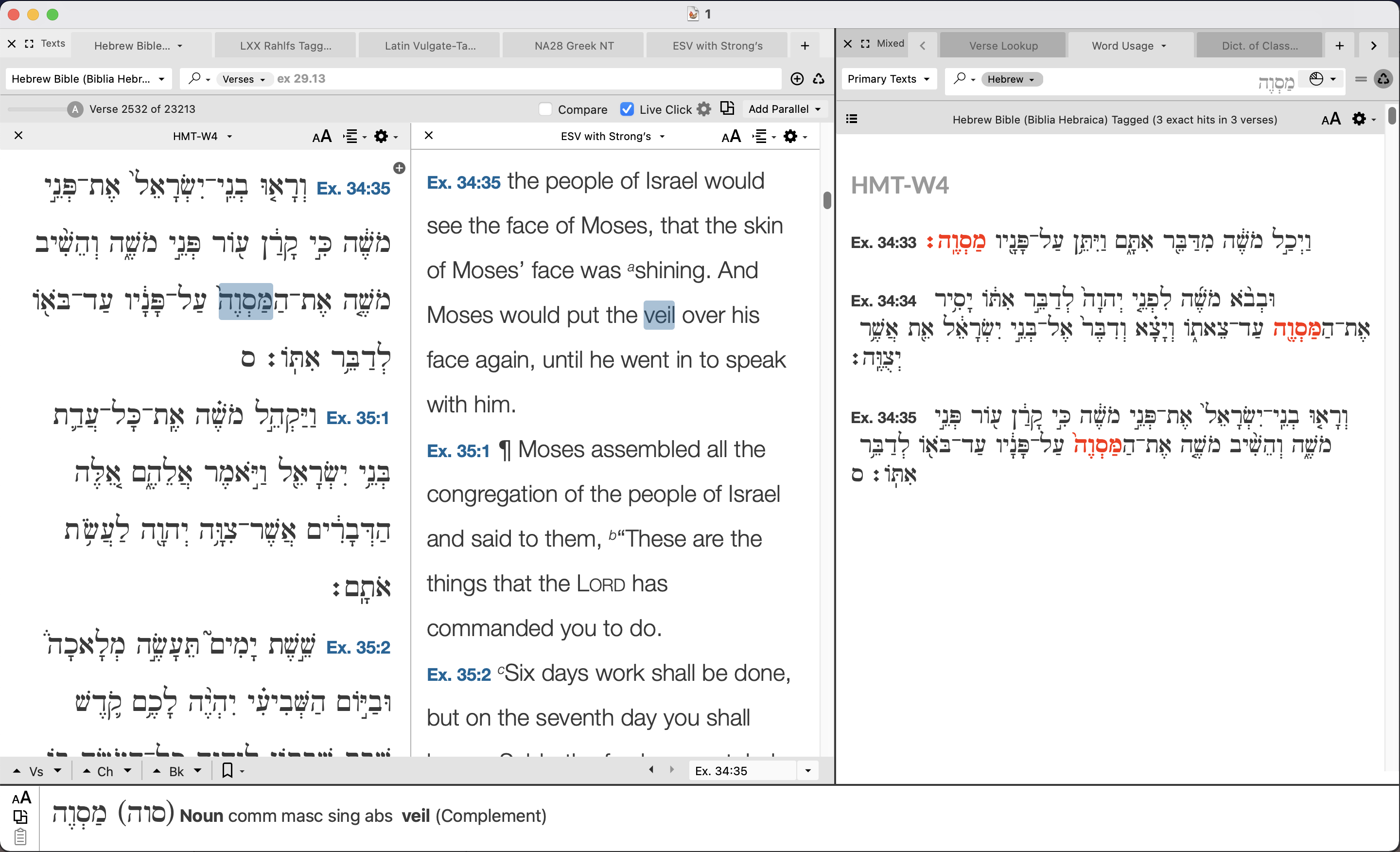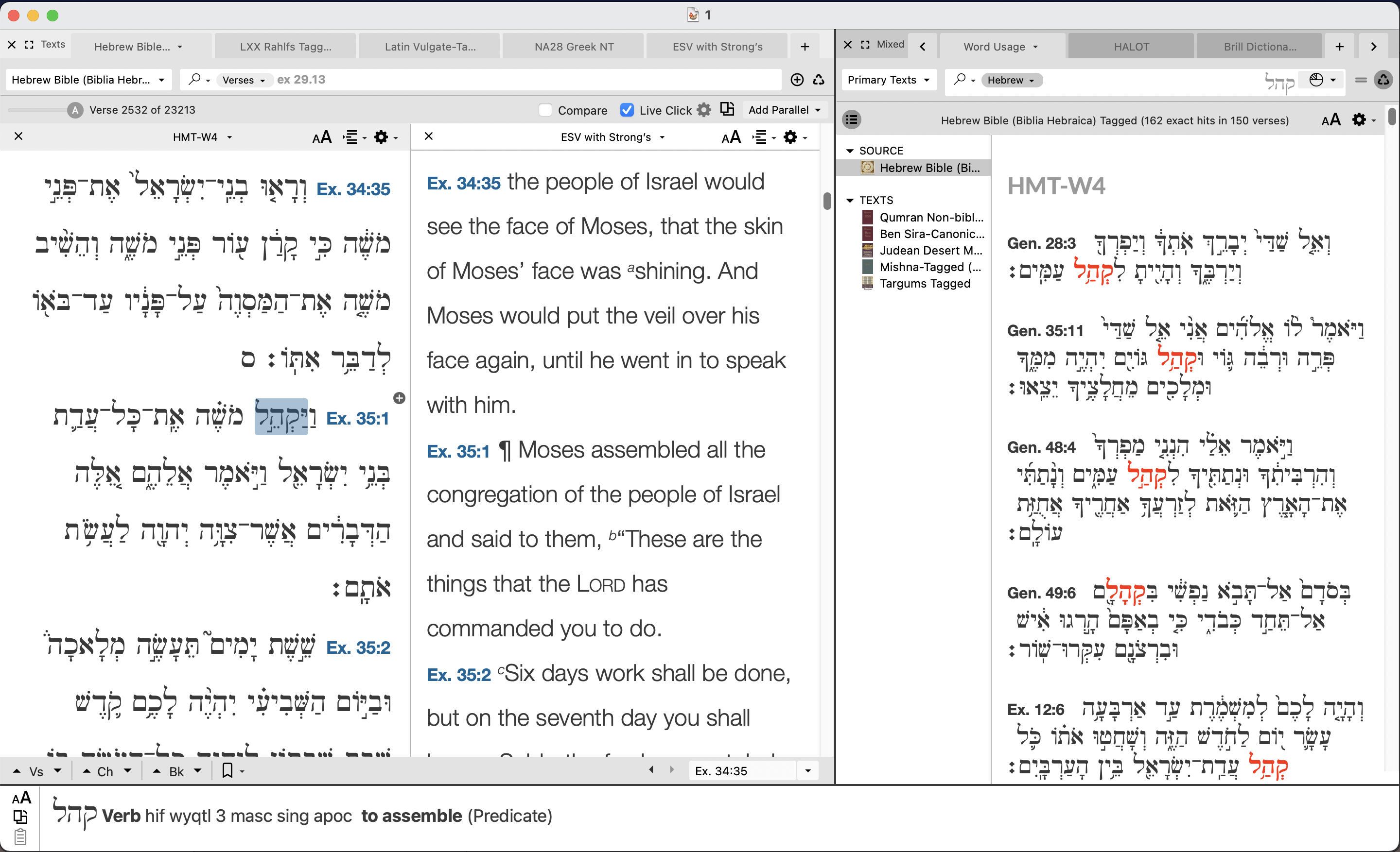 A single click on a word shows me all the occurrences of that word in the Hebrew Bible and any other ancient Hebrew literature I have included in my collection called Primary Texts.