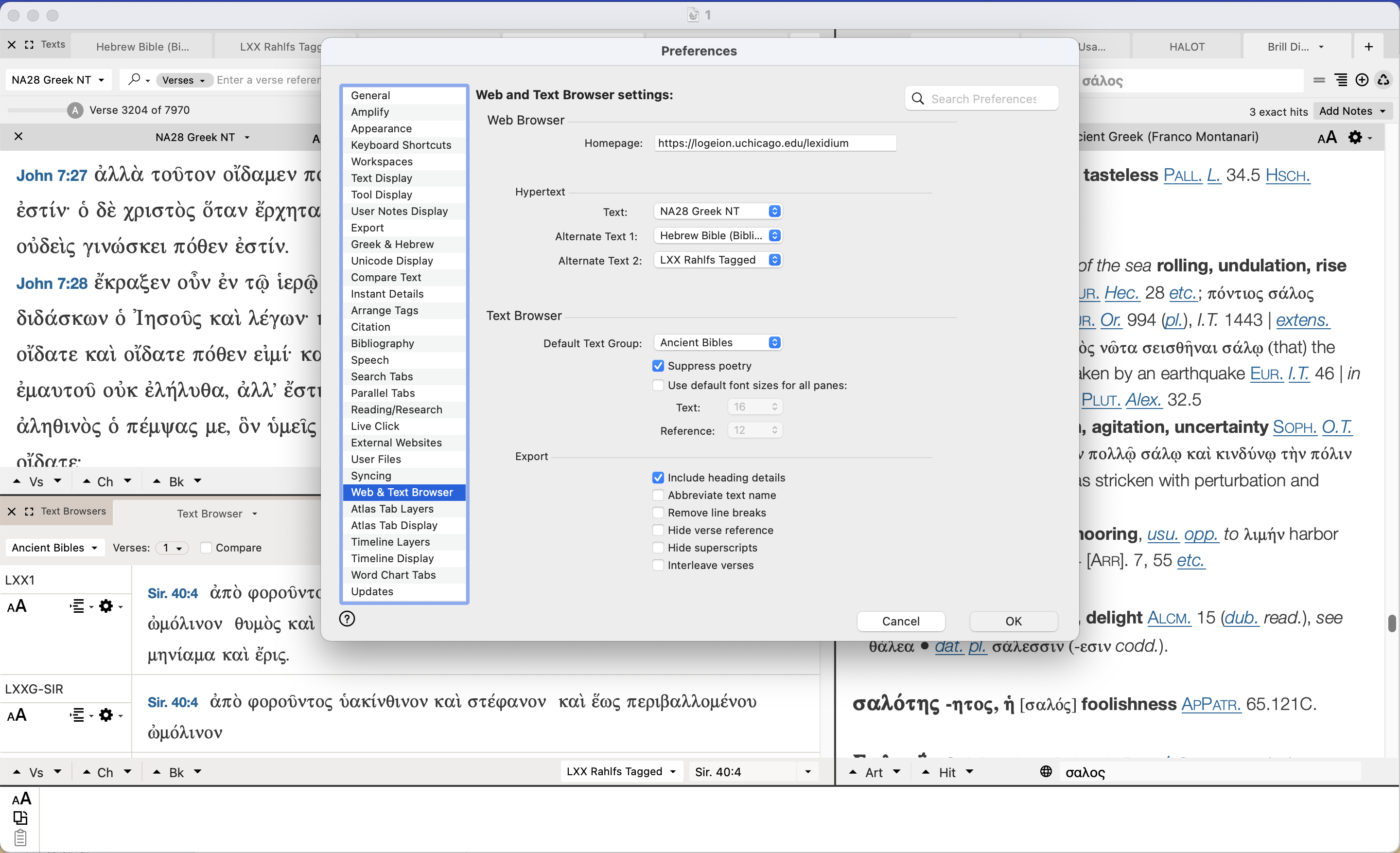 The same thing happens if you find a reference to the Apostolic Fathers. Clicking the hyperlink opens multiple versions in the zone allotted for the text browsers.