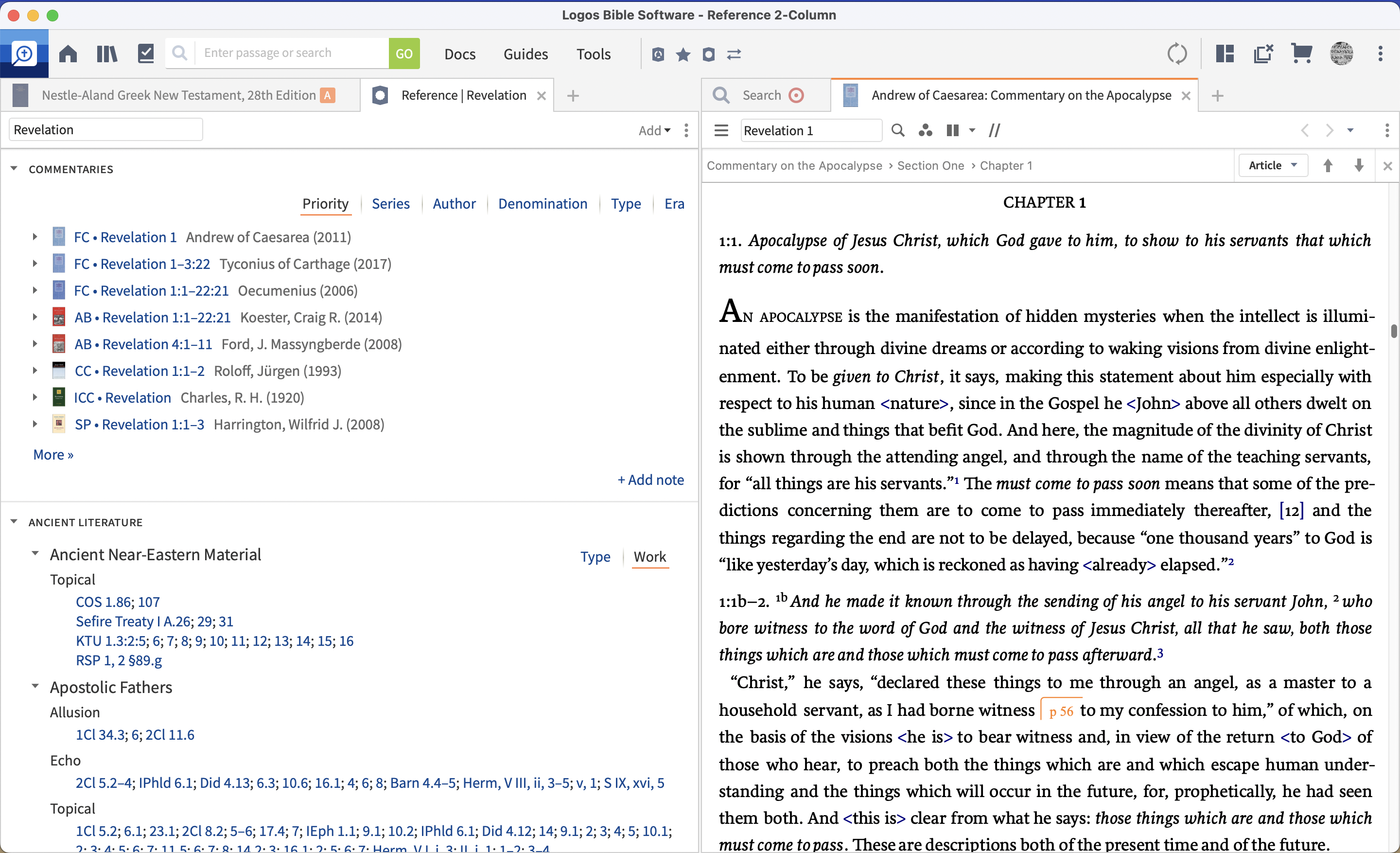 Each post in this series will discuss (1) how you can access and interact with FC in Logos and (2) the content of individual volumes. In this first post, let’s take a look at the how owning the series in Logos adds depth to your typical commentary lineup.