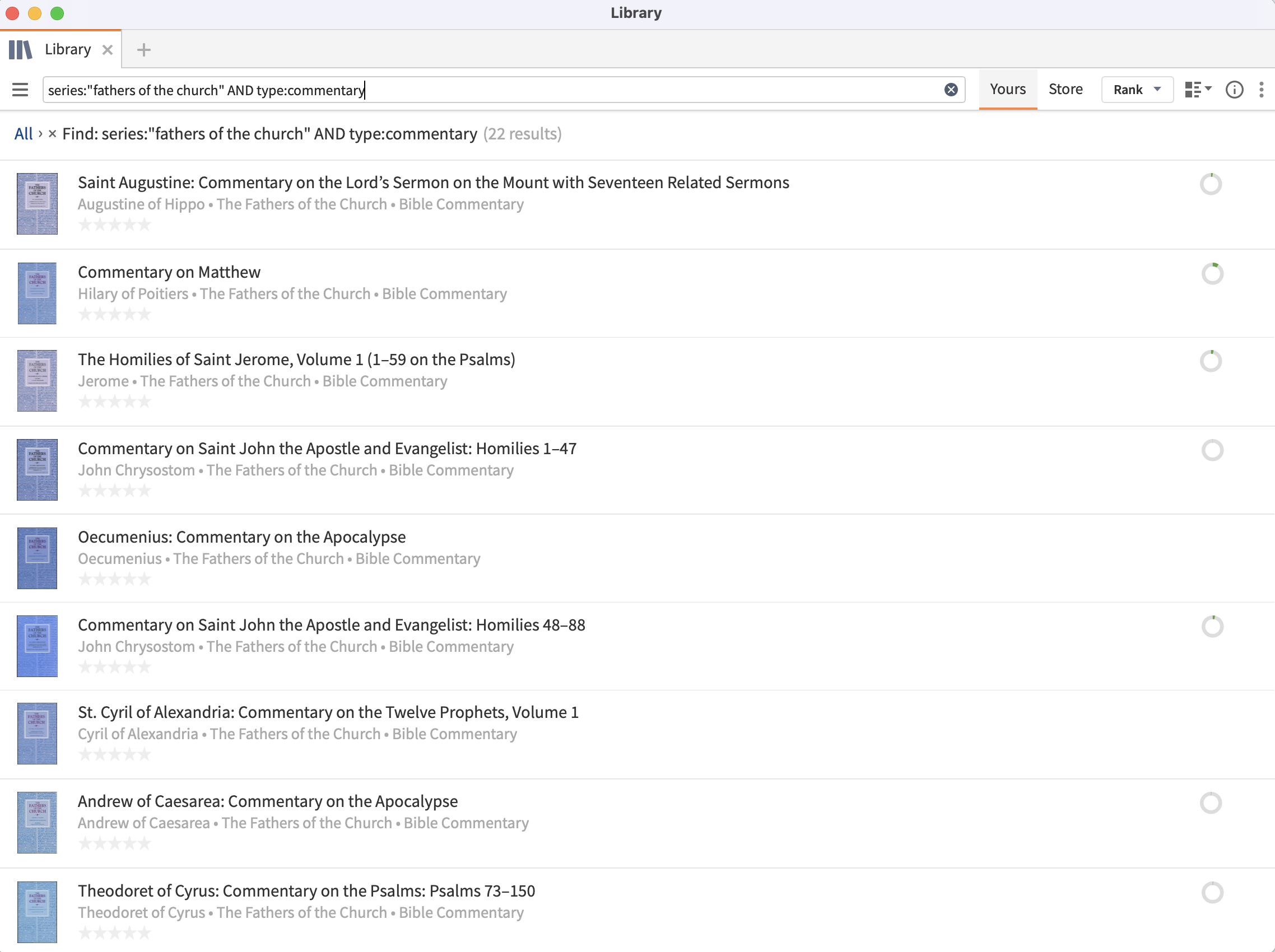Logos recently updated their Fathers of the Church (144 vols.) series, and I think this resource clearly demonstrates the benefits of building a digital library in Logos Bible Software. Reading and research can be done in a variety of ways, and I think it is important to take advantage of the unique benefits of each and every method—both print and digital books are wonderful. We don’t have to choose between one or the other. While you might want to read many of these volumes cover-to-cover in physical, print editions, Logos greatly enhances the accessibility of the Fathers of the Church series (FC). Logos is the only Bible Software platform to offer FC, and in this series of posts I want to demonstrate why Logos is the ideal format in which to own FC.