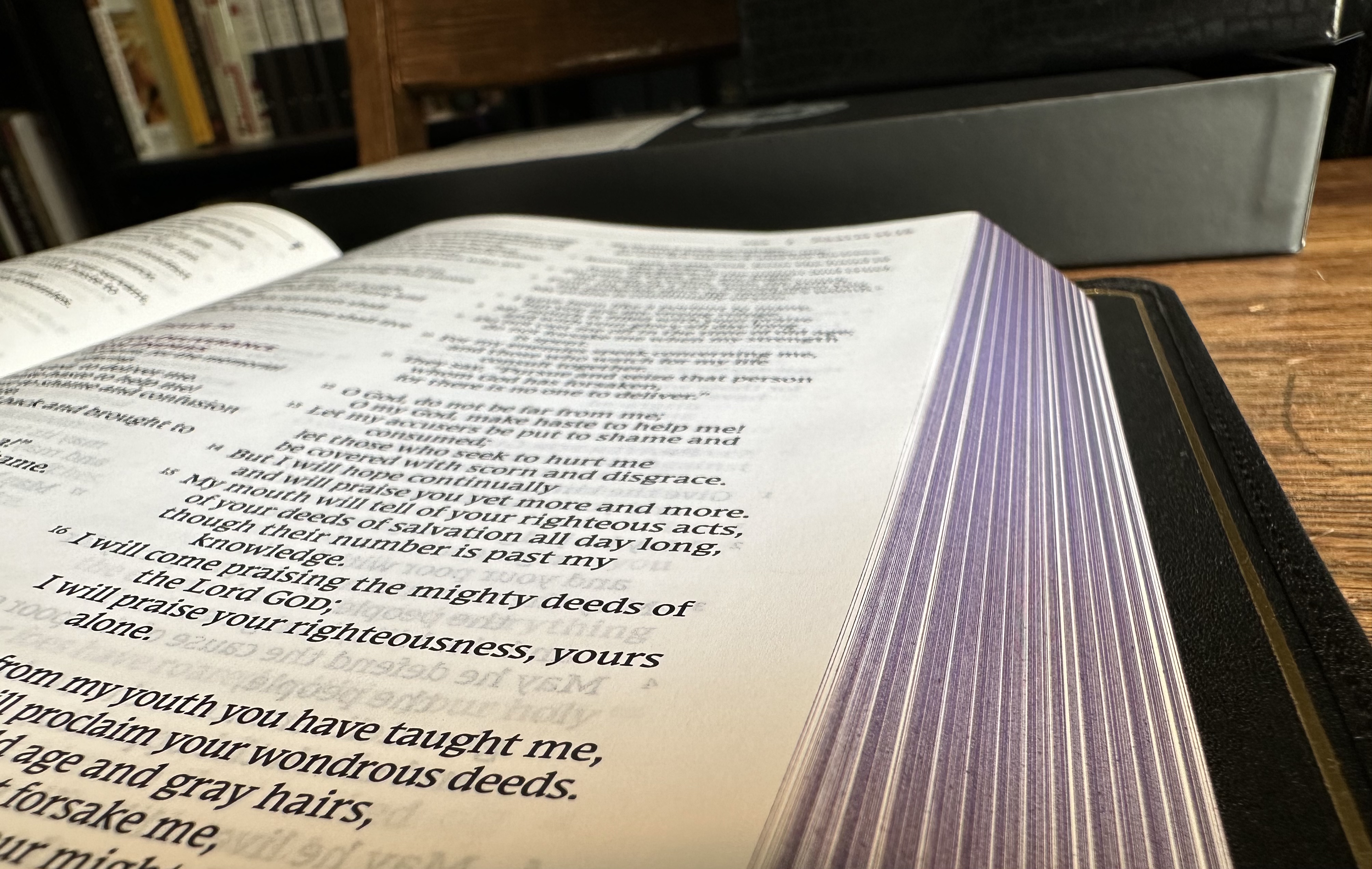 The Smyth-sewn, edge lined construction means this edition of the NRSVue is a true “floppy Bible,” and I love that about it.