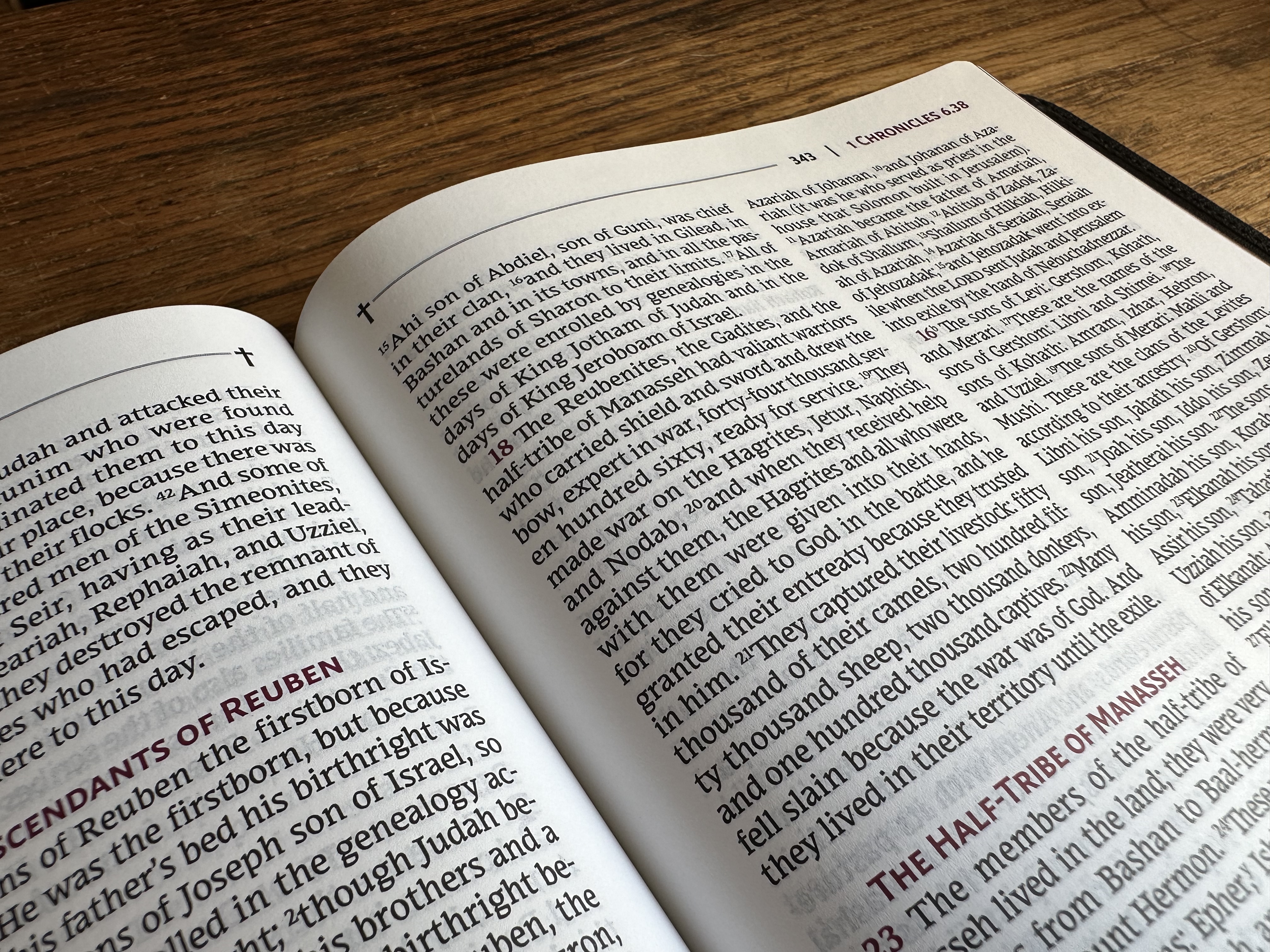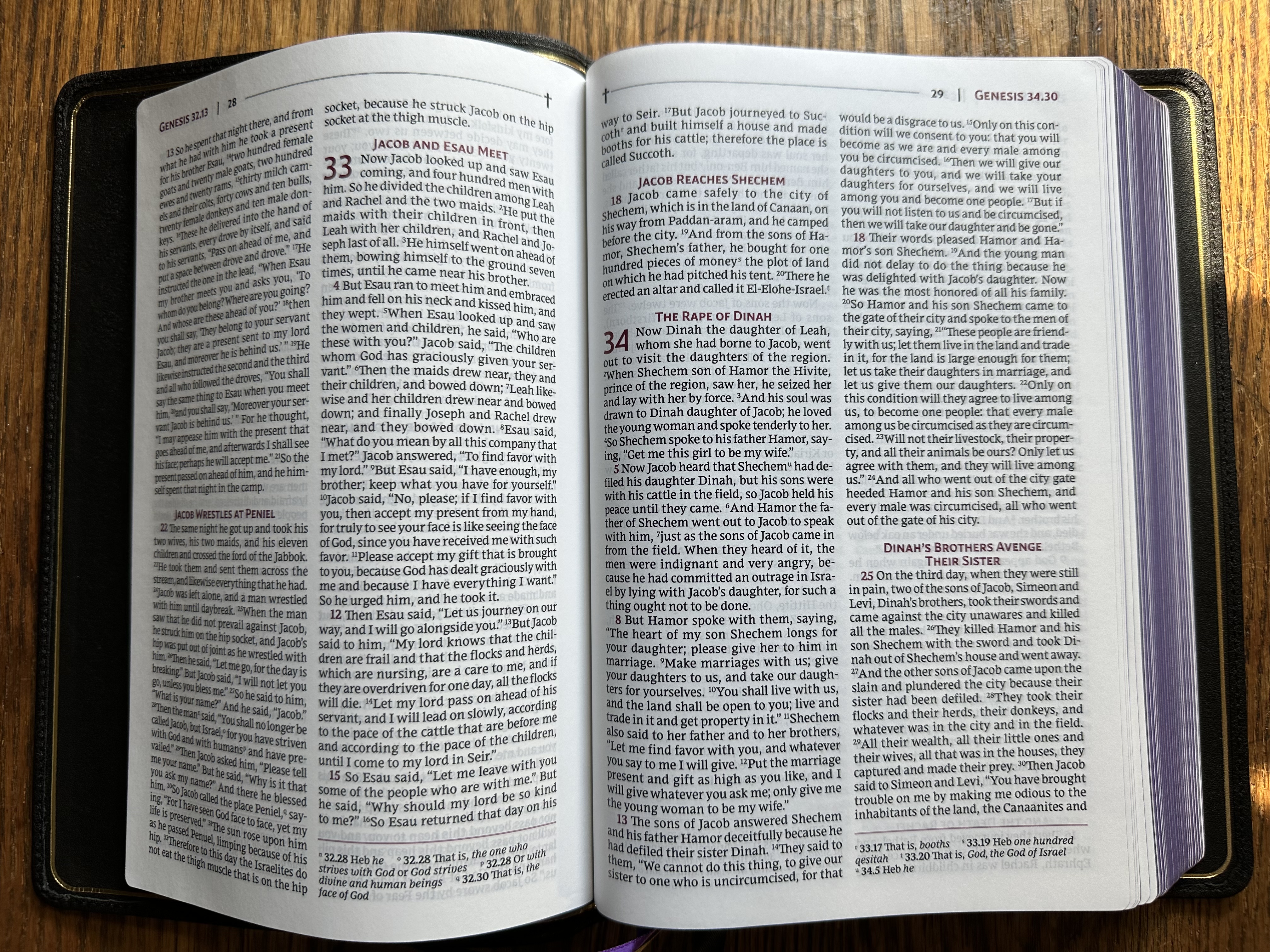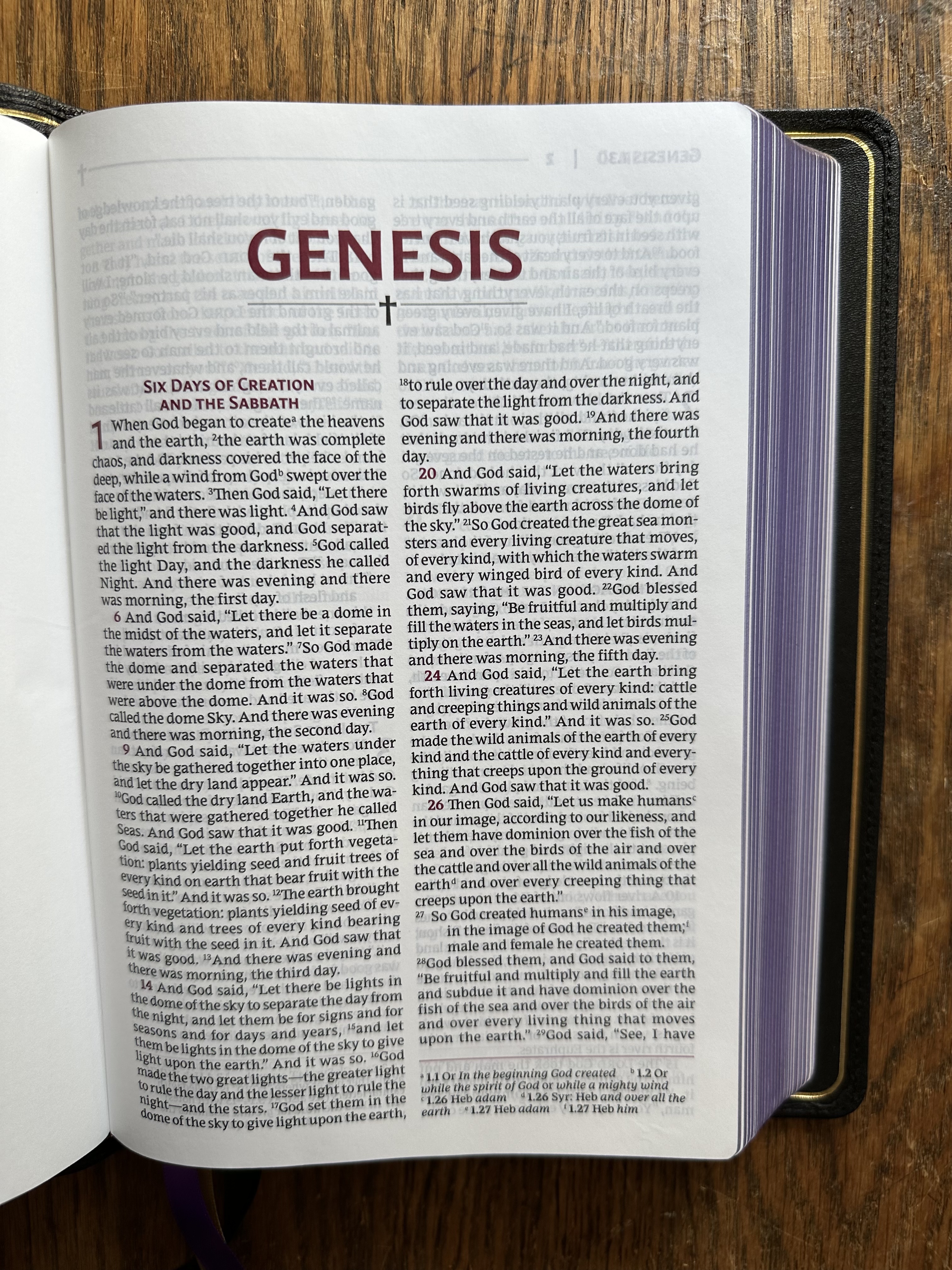 One interesting, perhaps controversial design choice is the inclusion of a cross on every page of the Bible. As a Christian, I like the visual reminder that we read all scripture with reference to Jesus, but it is a bit odd in light of the way the NRSV has served as the default translation in such varied academic contexts.