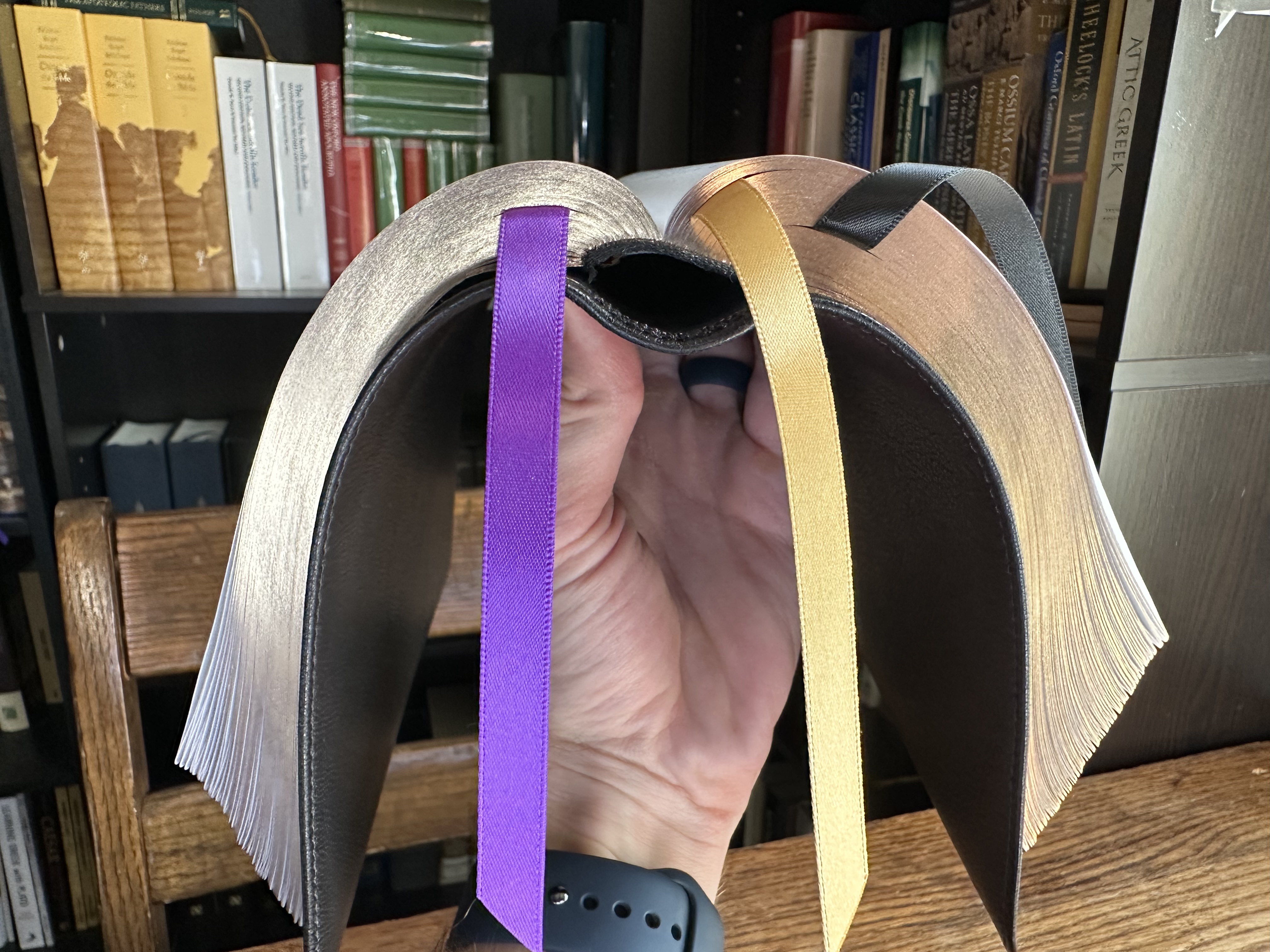 I couldn’t bring myself to break their Premier Collection seal and so I took a tip from Tim Wildsmith, slipping the Bible out the side of the wrapping.